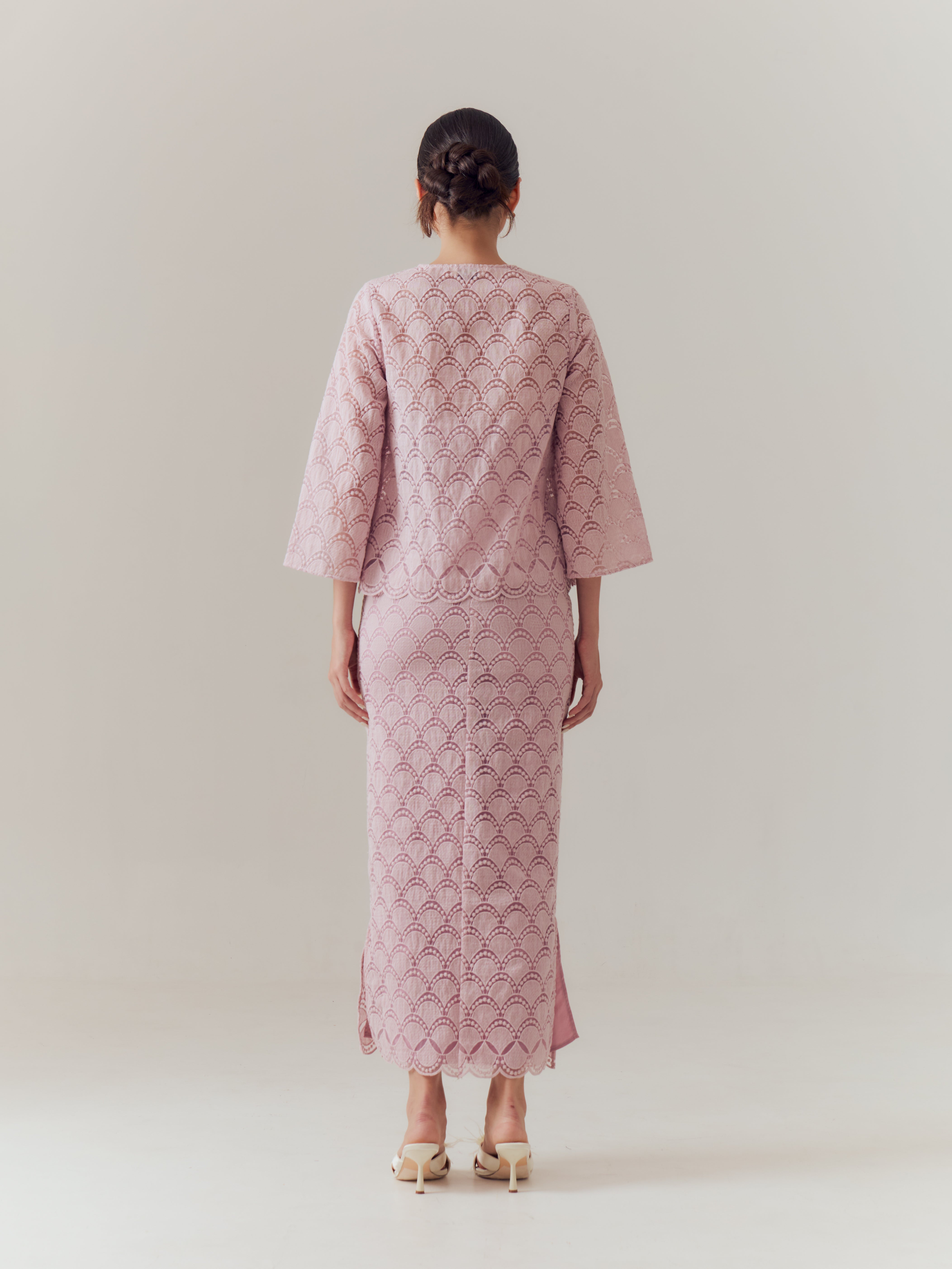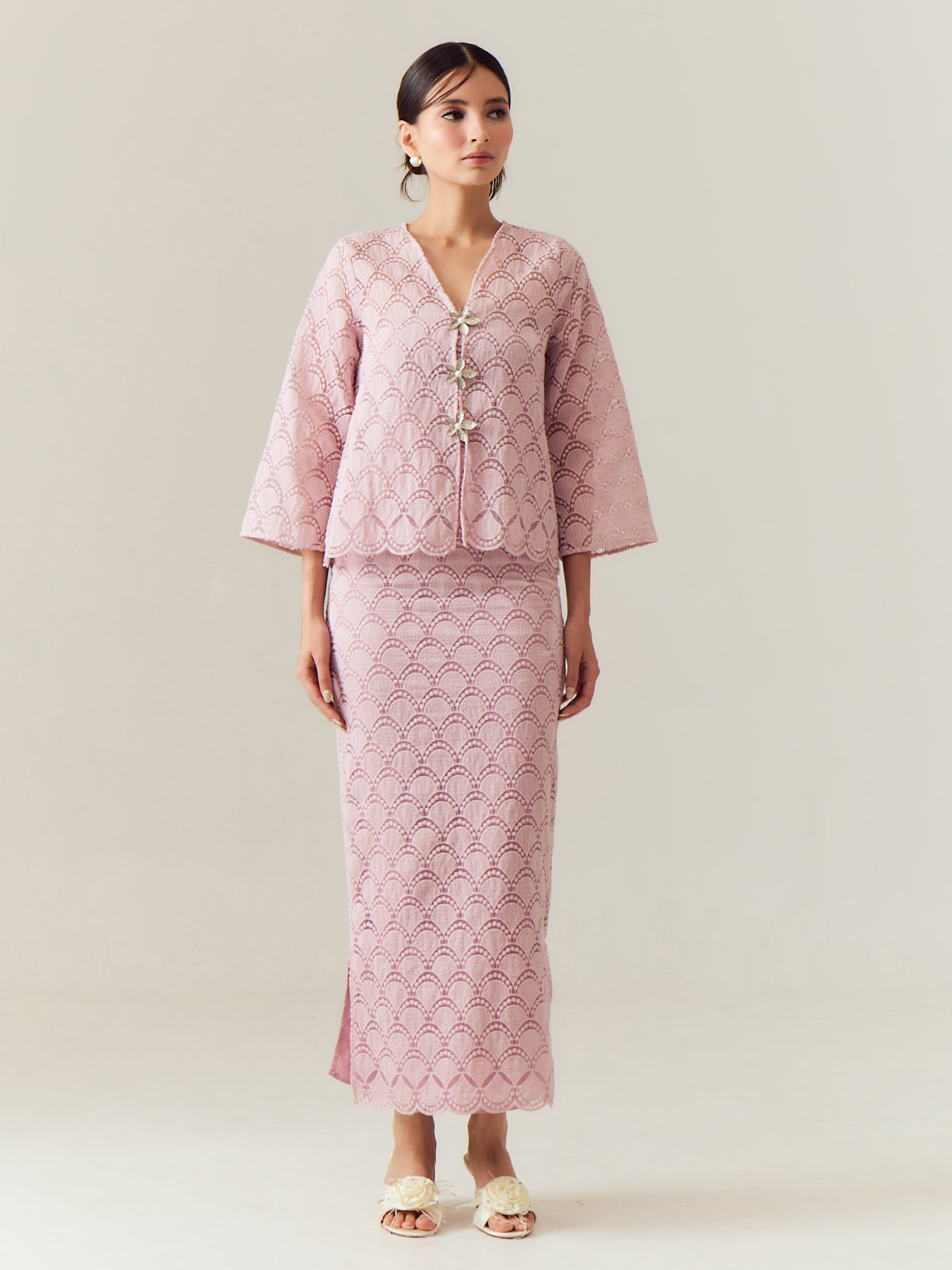 Nora Kebaya combines elegance and versatility with a layered silhouette. The fitted tube dress features a secure elastic waist, ensuring a comfortable and reliable fit for any occasion, while the airy, see-through lace outer layer adding movement and dimension to the ensemble. Worn together, the pieces create a cohesive look; worn separately, the tube dress offers a polished option for formal events, and the lace outer can be styled as a chic overlay or statement cardigan.
