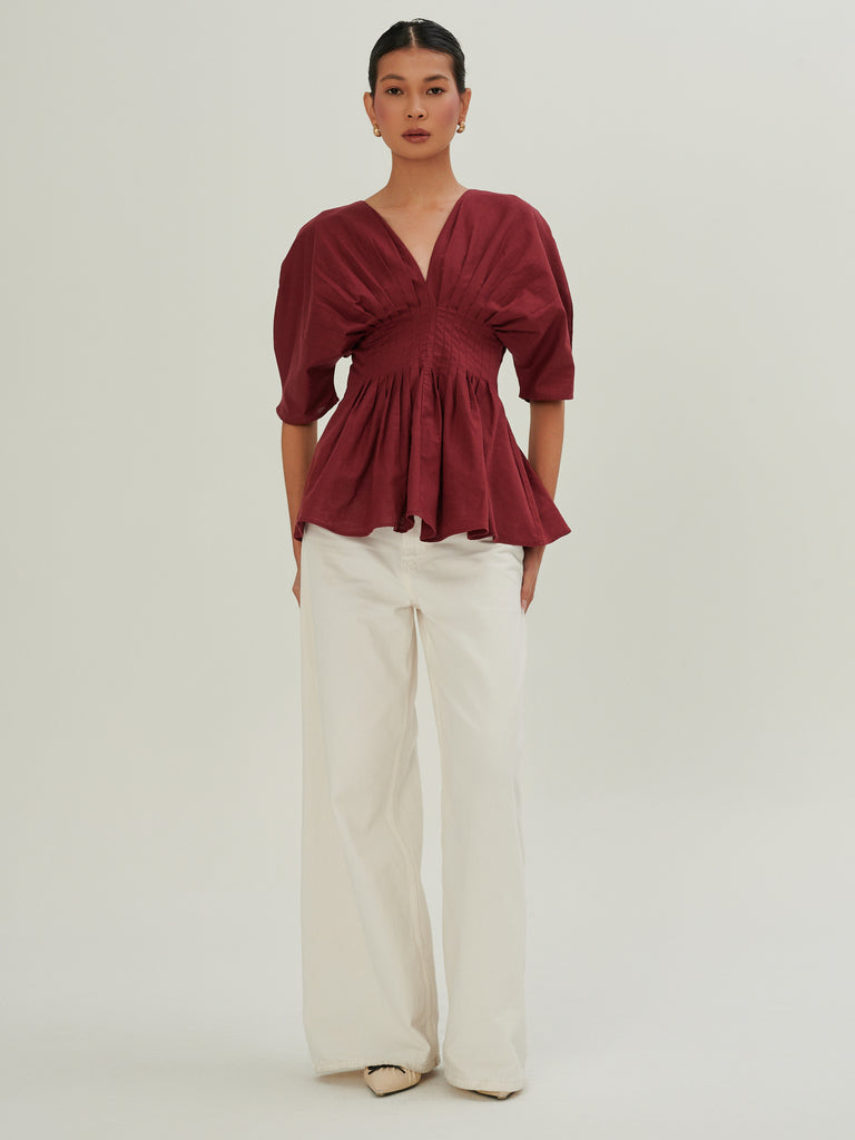 Now available in a thoughtful selection of neutral and rich understated shades, the Nia Top is crafted for those who appreciate understated elegance with a relaxed edge.